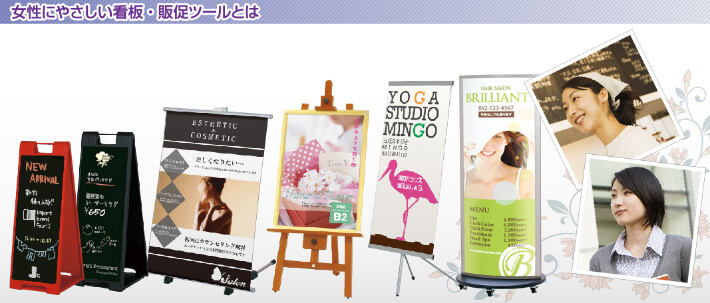 このように店舗業種、目的に合ったおすすめの屋外用看板、販促ツールをピックアップしておりますので、きっとお客様のイメージに合う商品をお選びいただけます。