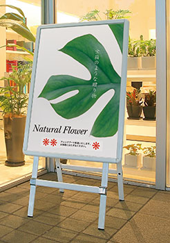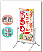 また、屋外用の看板、販促ツールだけでなく、オプションとして安定感を持たせるためのウエイトを付けられるものが多数ございますので、転倒が心配な方にも安心して設置していただけます。さらに、国産の商品も取り揃えておりますので、品質を重視される方にも安心してお選びいただけます。